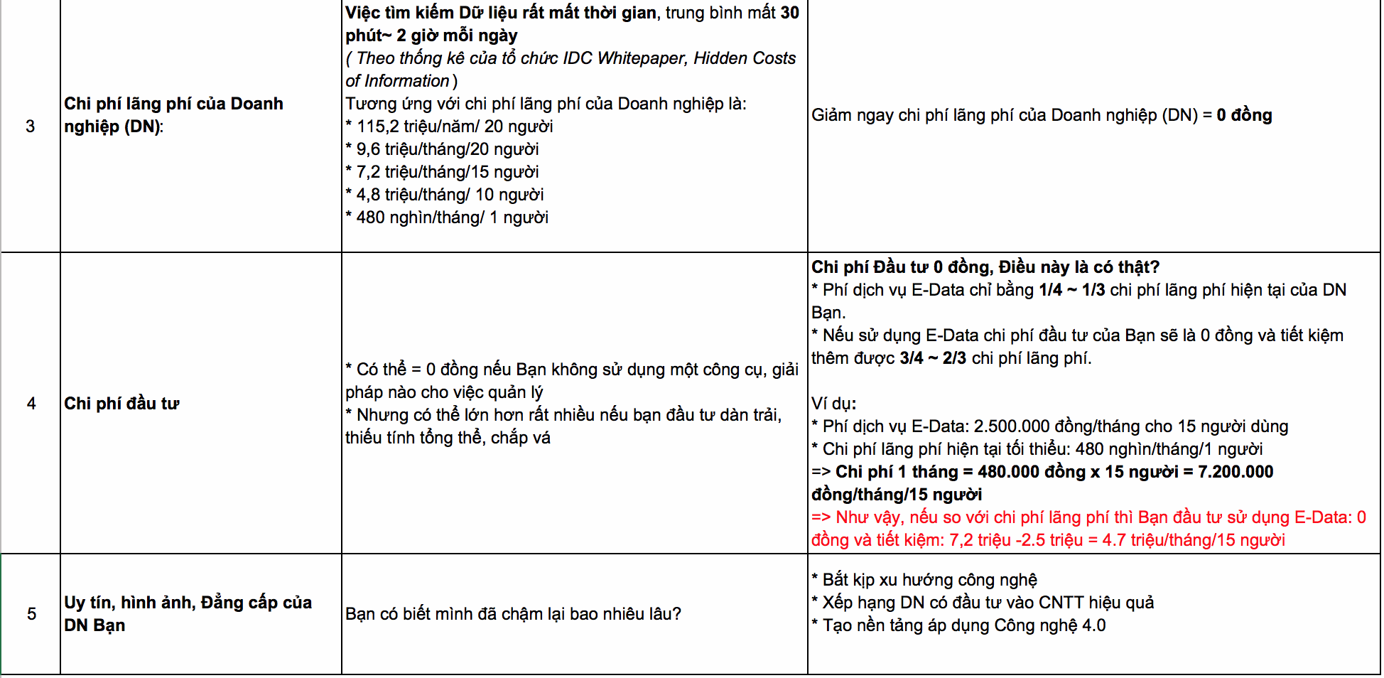 Nếu Bạn vấn đang tìm kiếm cho mình câu trả lời làm thế nào để tăng lợi nhuận, giảm x2, x3 lần chi phí lãng phí chỉ với chi phí đầu tư bằng 1/4~1/3 chi phí lãng phí của Doanh nghiệp, thậm chí 0 đồng? Hãy kiểm chứng với E-Data!